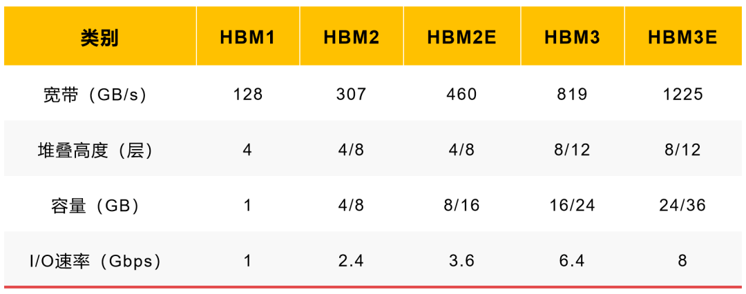 而带宽往往取决于芯片的性能,因而采用了先进封装从而克服高性能计算应用程序的内存访问障碍的HBM应运而生。作为一种新兴的高带宽内存,它几乎成为了AI芯片的必备搭档。